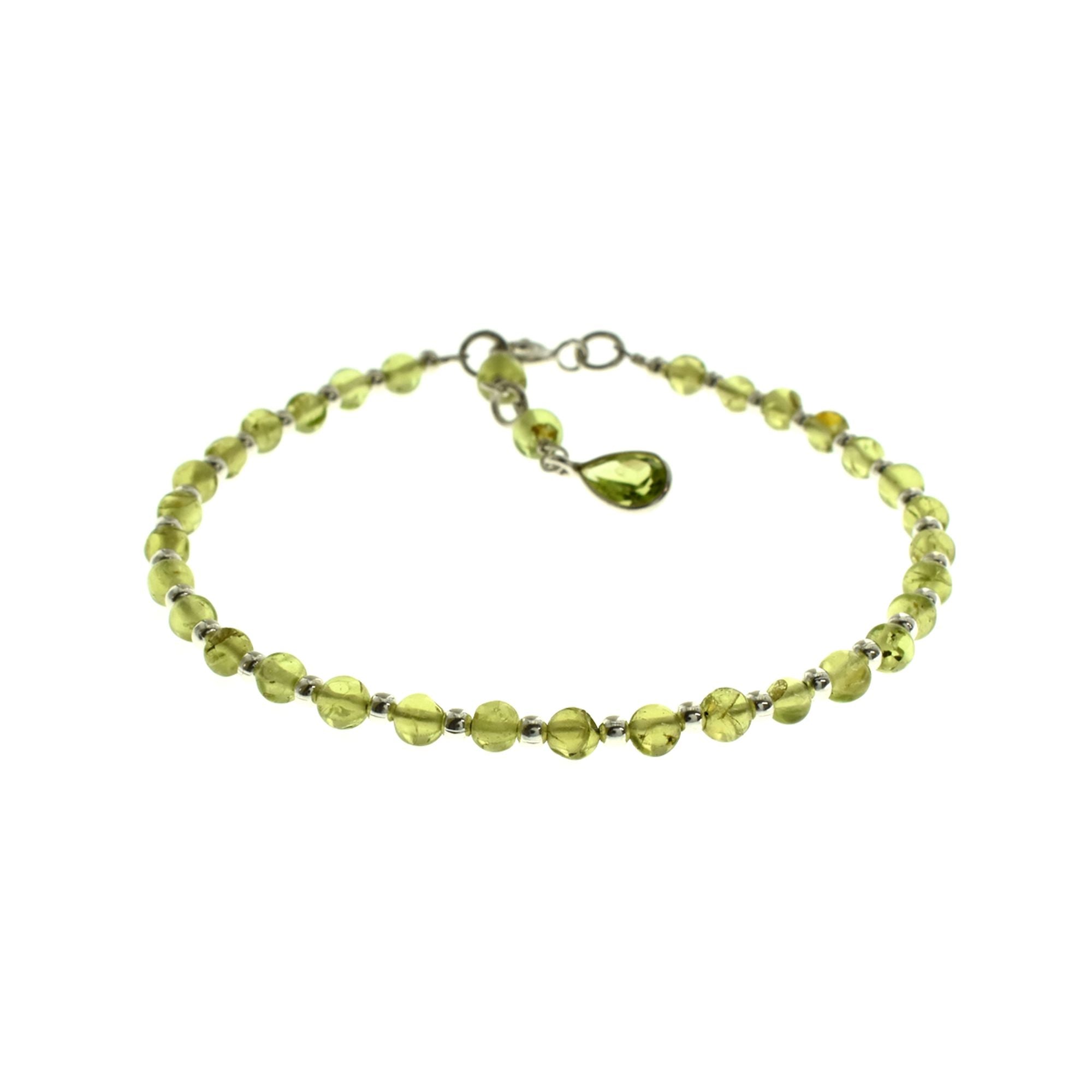 4mm alternate peridot and silver bead bracelet
