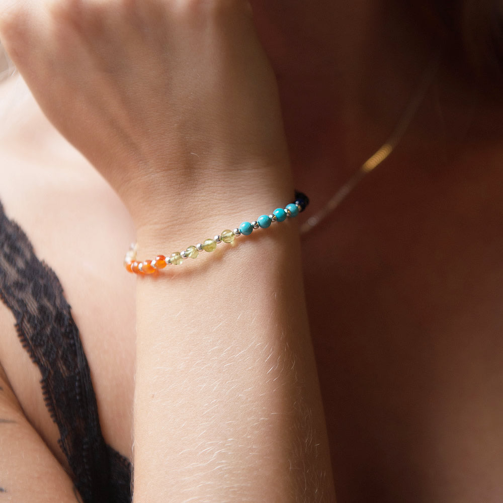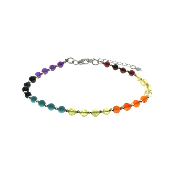 Jaelyn rainbow coloured gemstone & silver bead bracelet