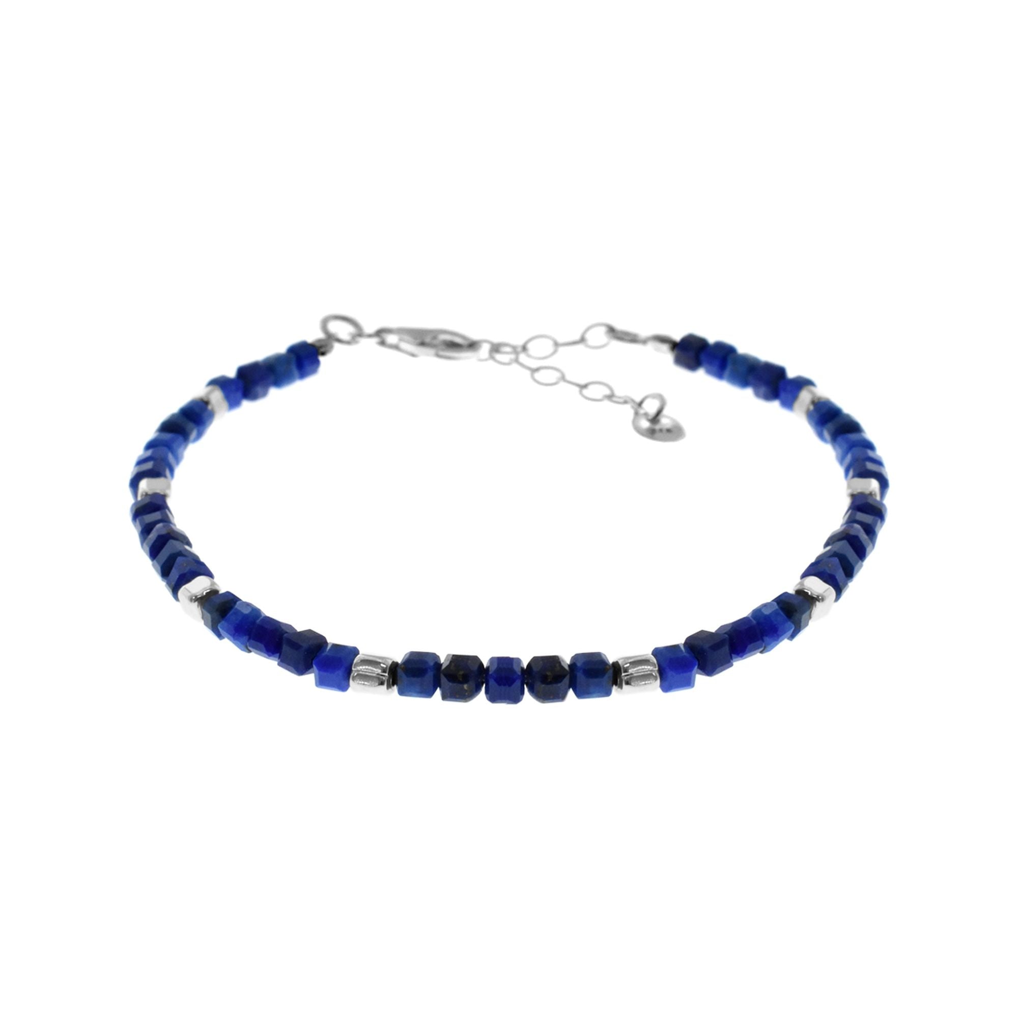 Square lapis lazuli and silver bead bracelet with silver spacers