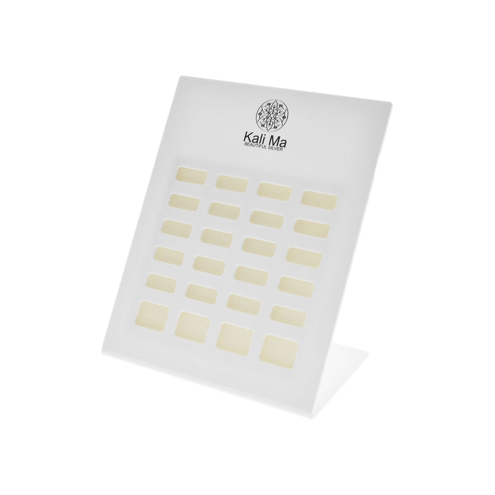 White acrylic ring or toe ring display holds 24 rings/toe rings