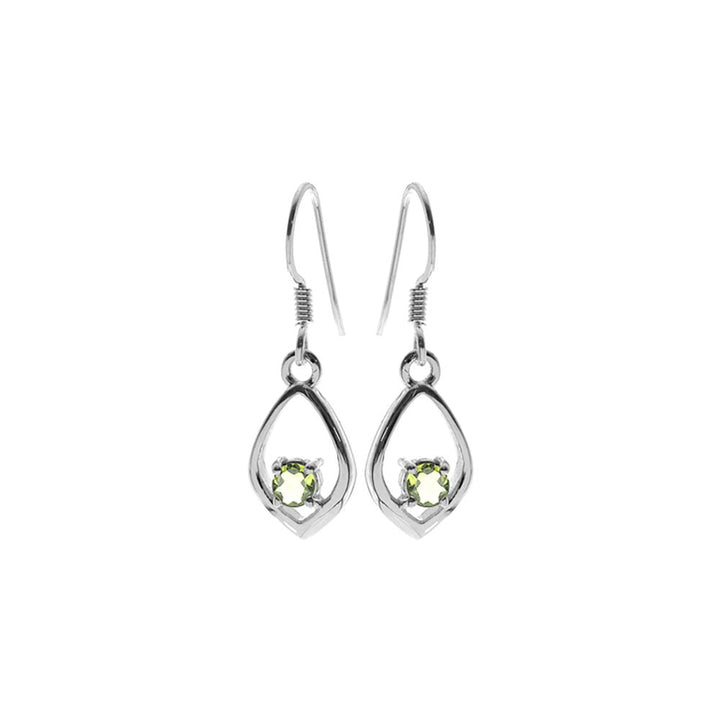 Small claw-set peridot silver ellipse frame earrings