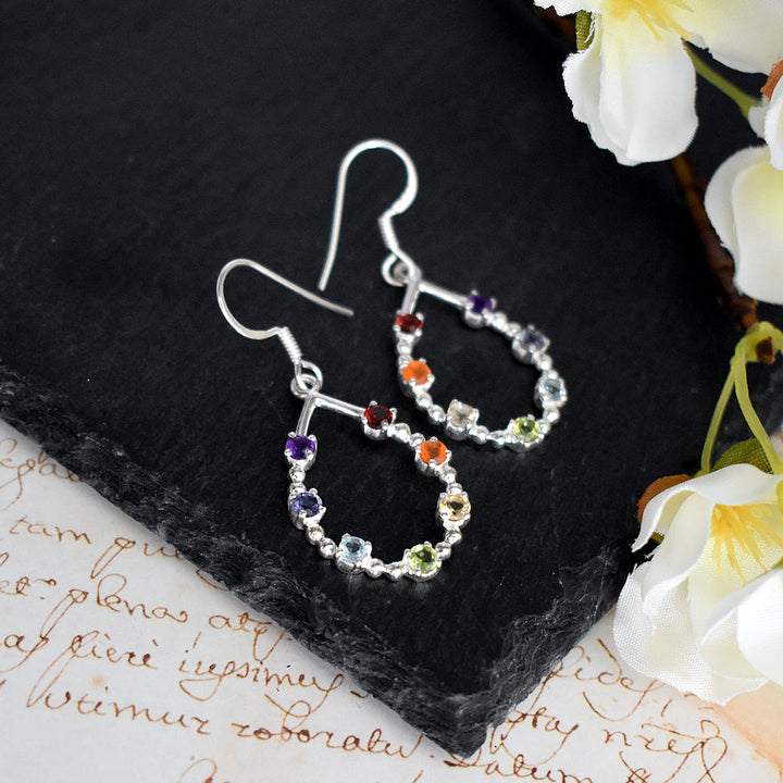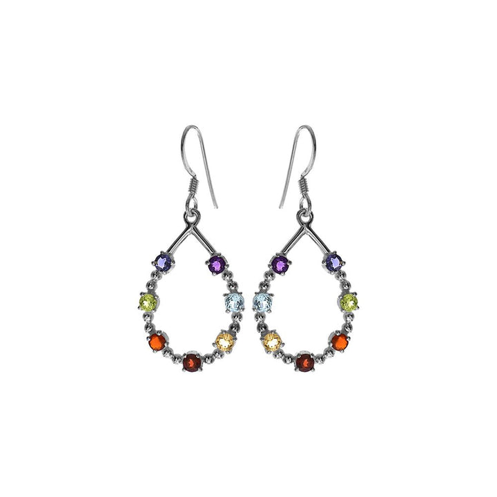 Silver open teardrop multi stone earrings