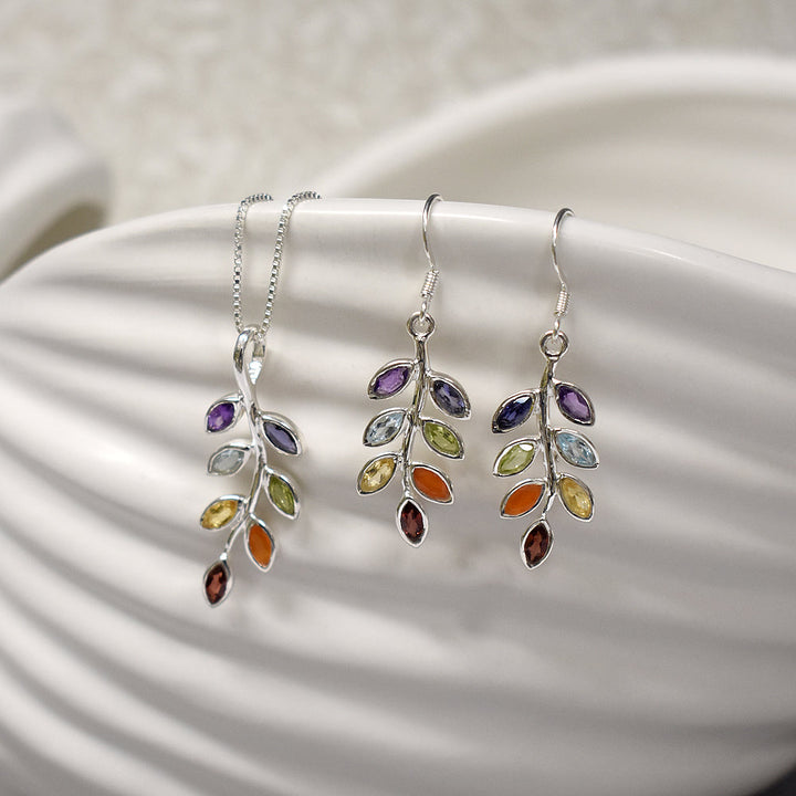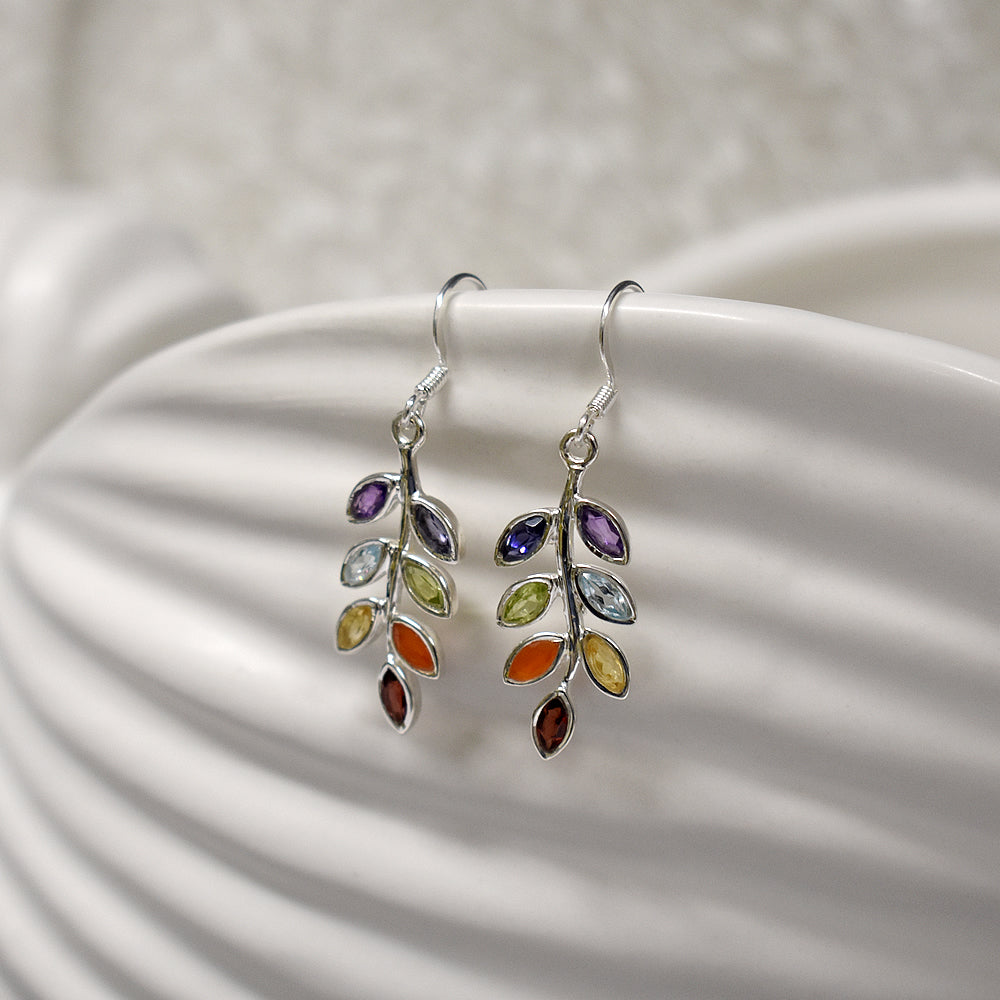 Faceted multi-colour sprig design earrings
