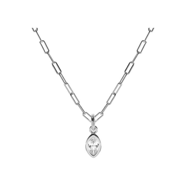 Dainty cubic zirconia and silver marquis on a simple silver rectangle cable chain