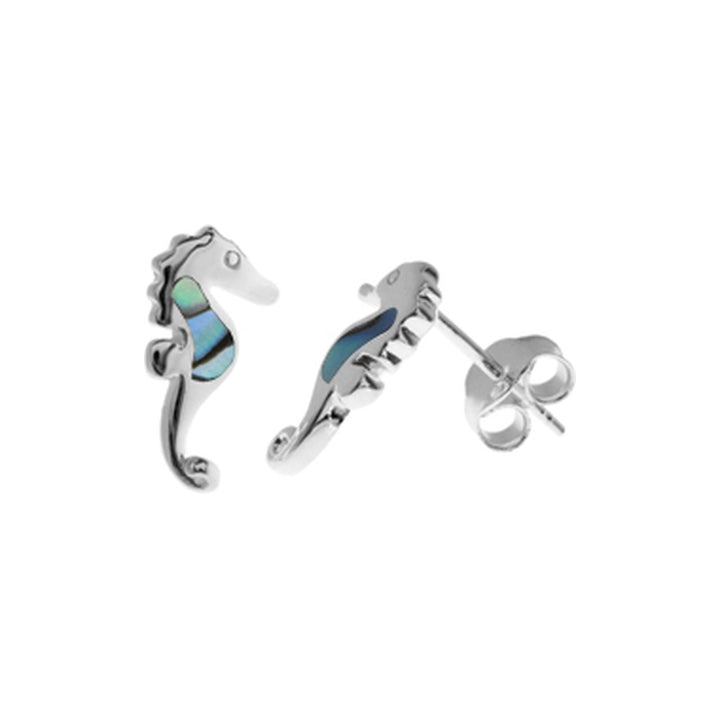 Paua shell and silver seahorse studs