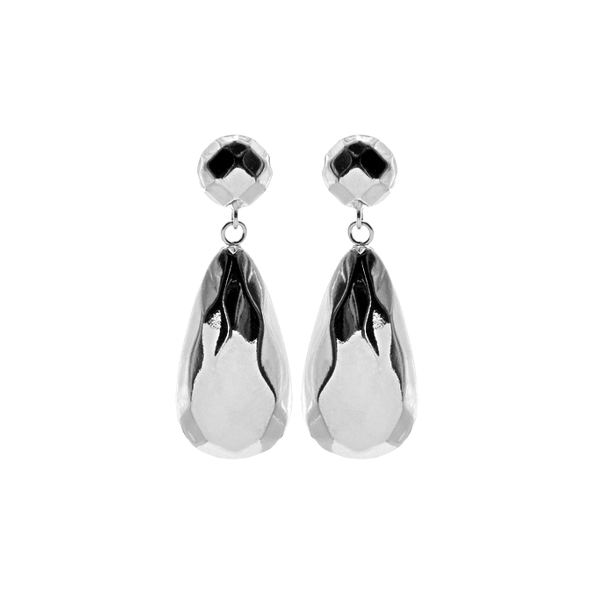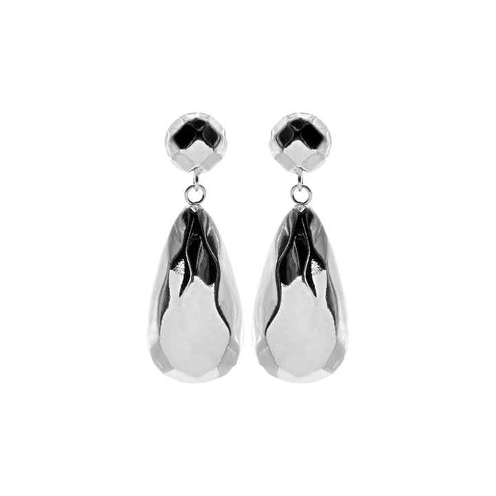 Textured sterling silver large teardrop earrings with half round diamond cut stud top