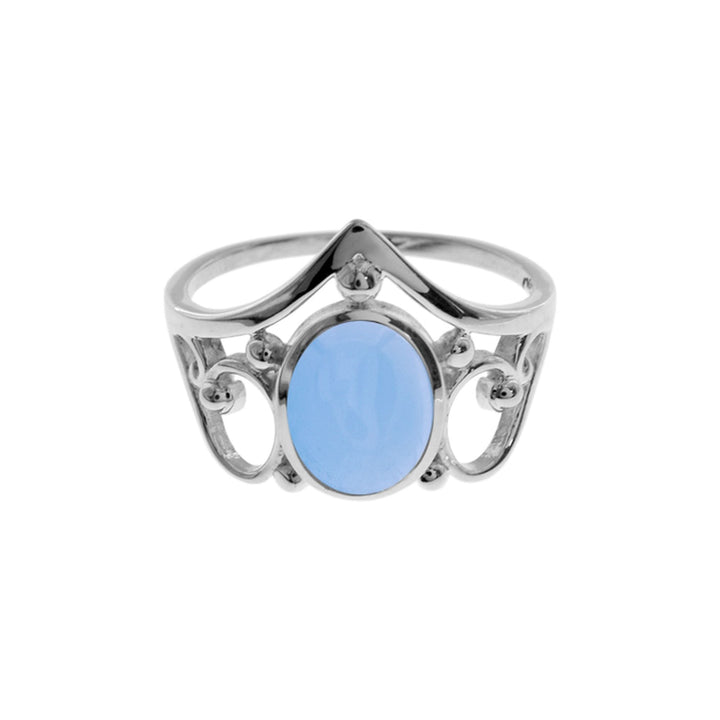 Lola abstract filigree oval blue chalcedony ring