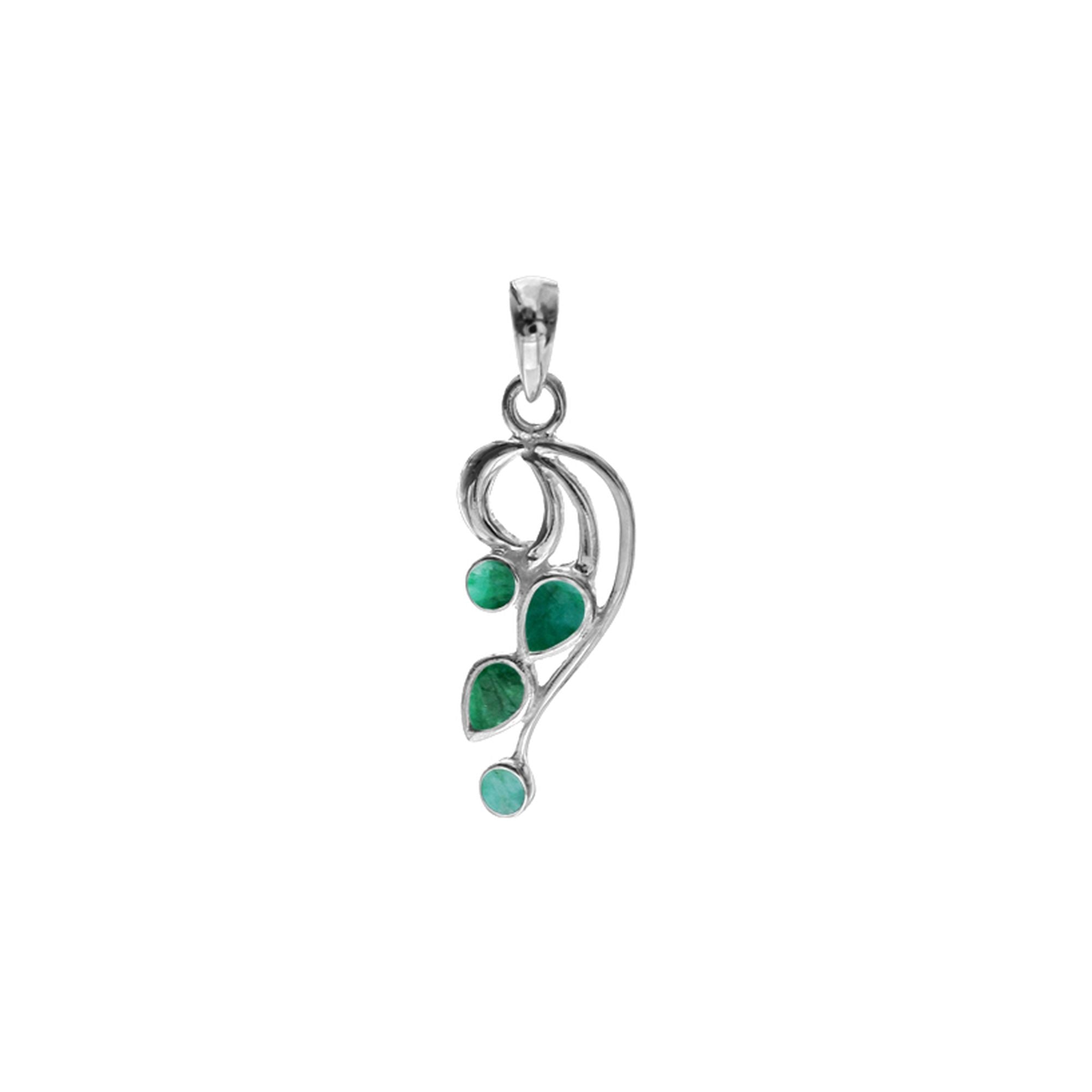 Emerald quartz 4-stone swirl silver pendant
