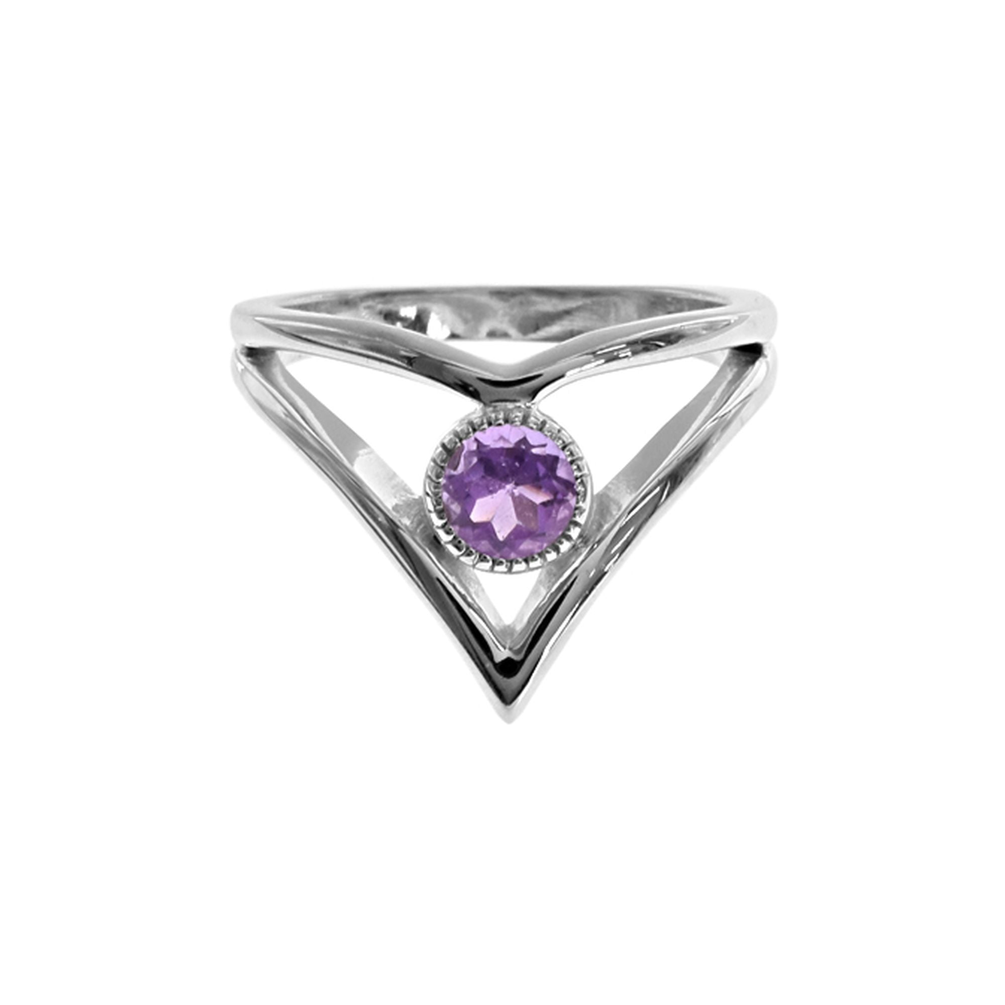 Lola open chevron amethyst facet ring