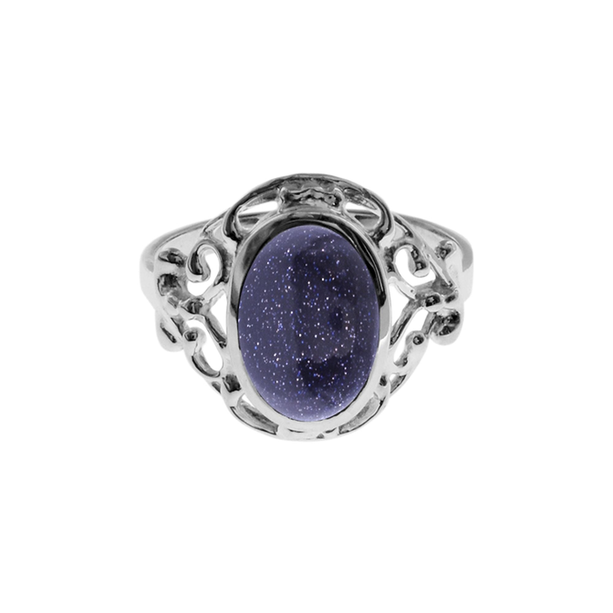 Oval blue goldstone filigree surround ring