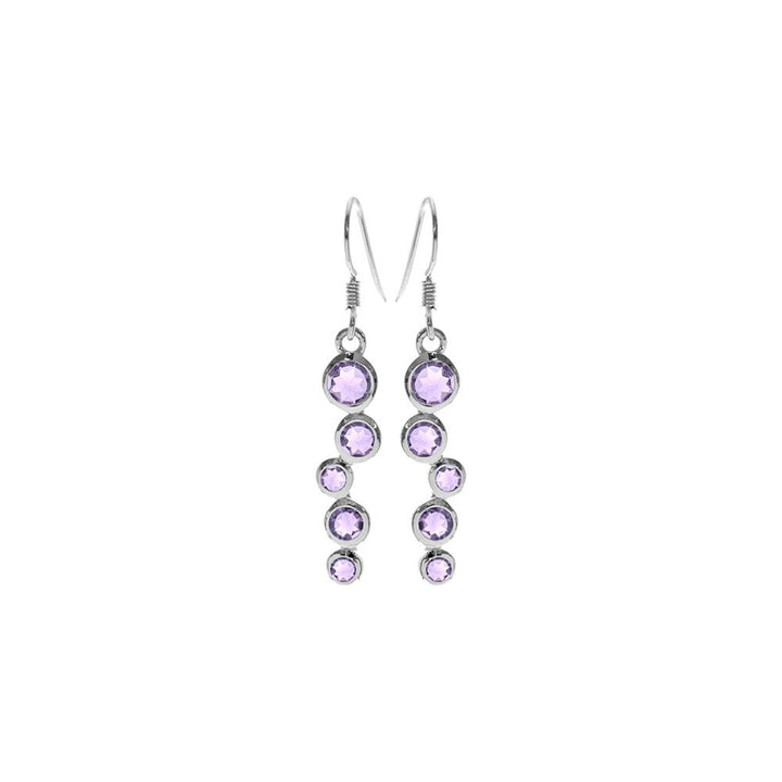 Staggered round amethyst and silver earrings