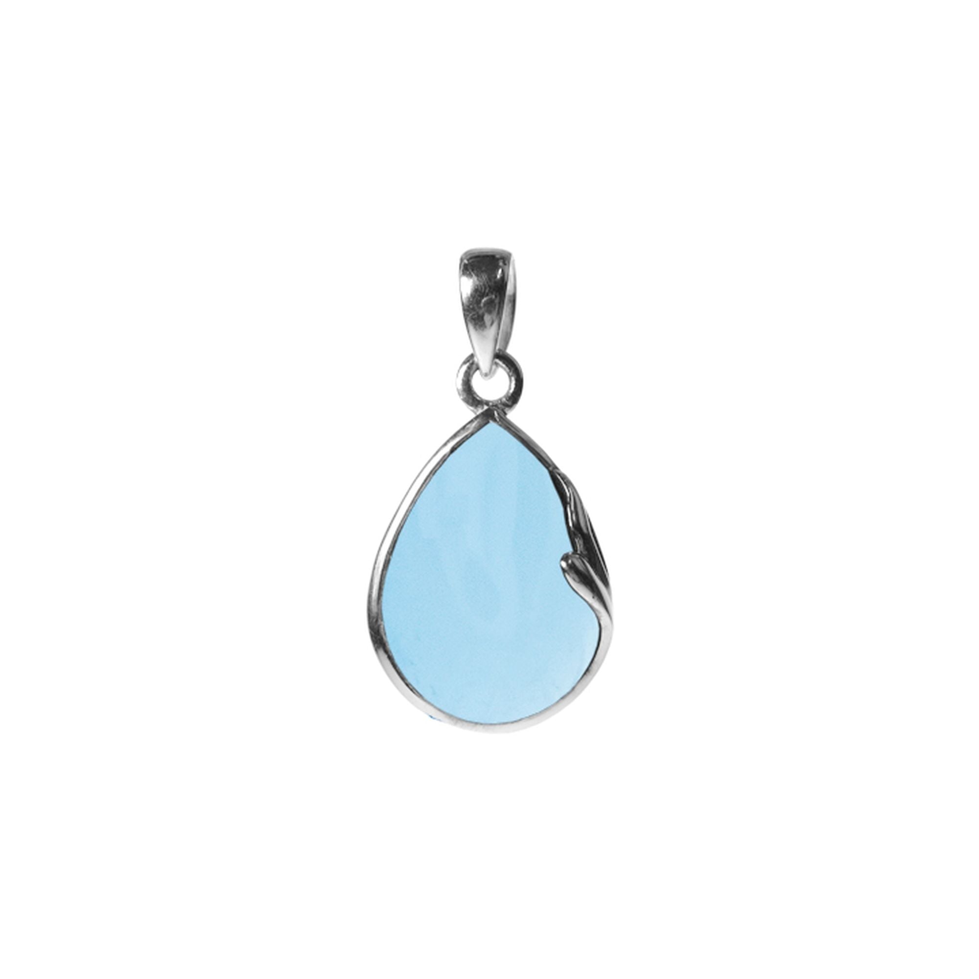 Teardrop blue chalcedony pendant with side detail