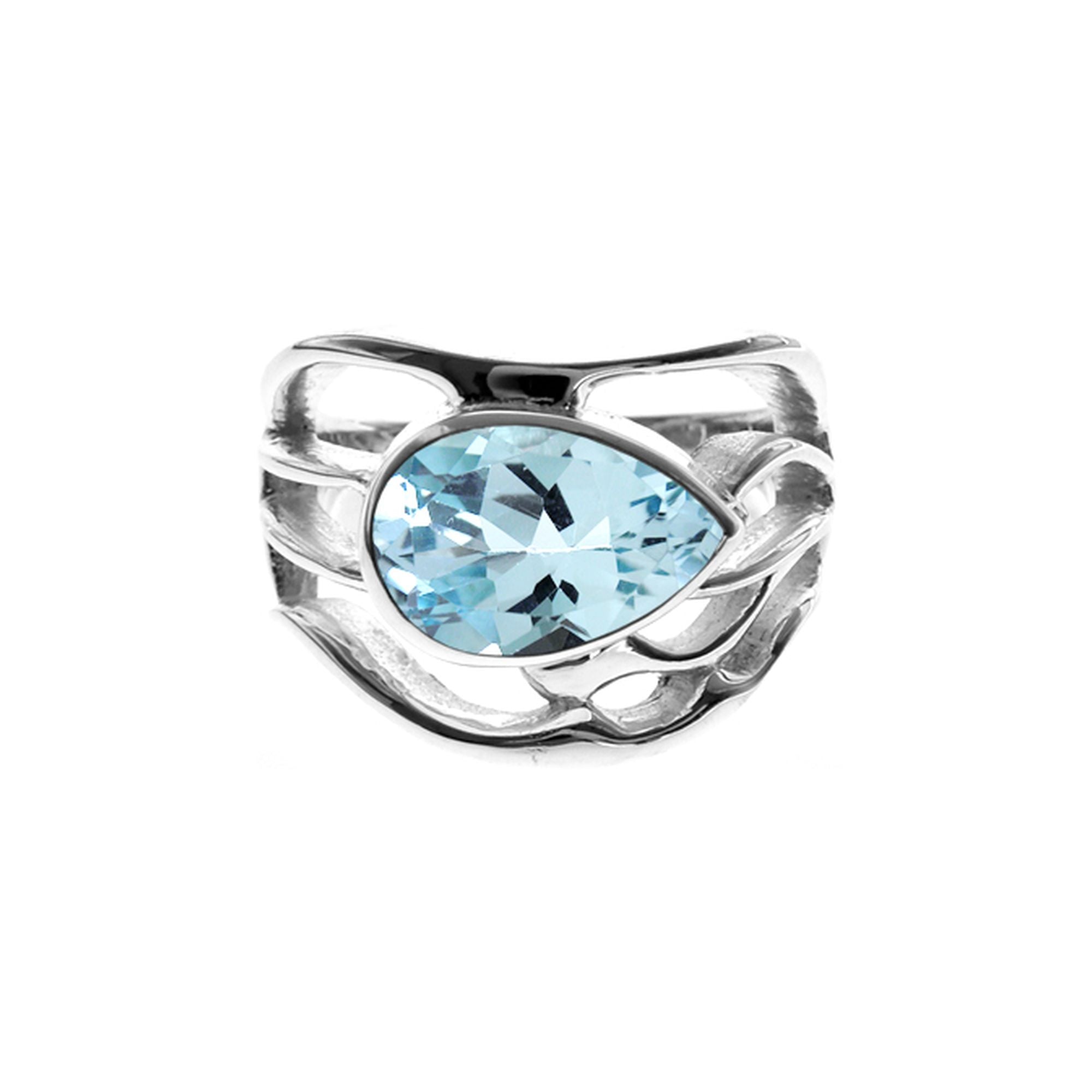Lola teardrop blue topaz wave design ring