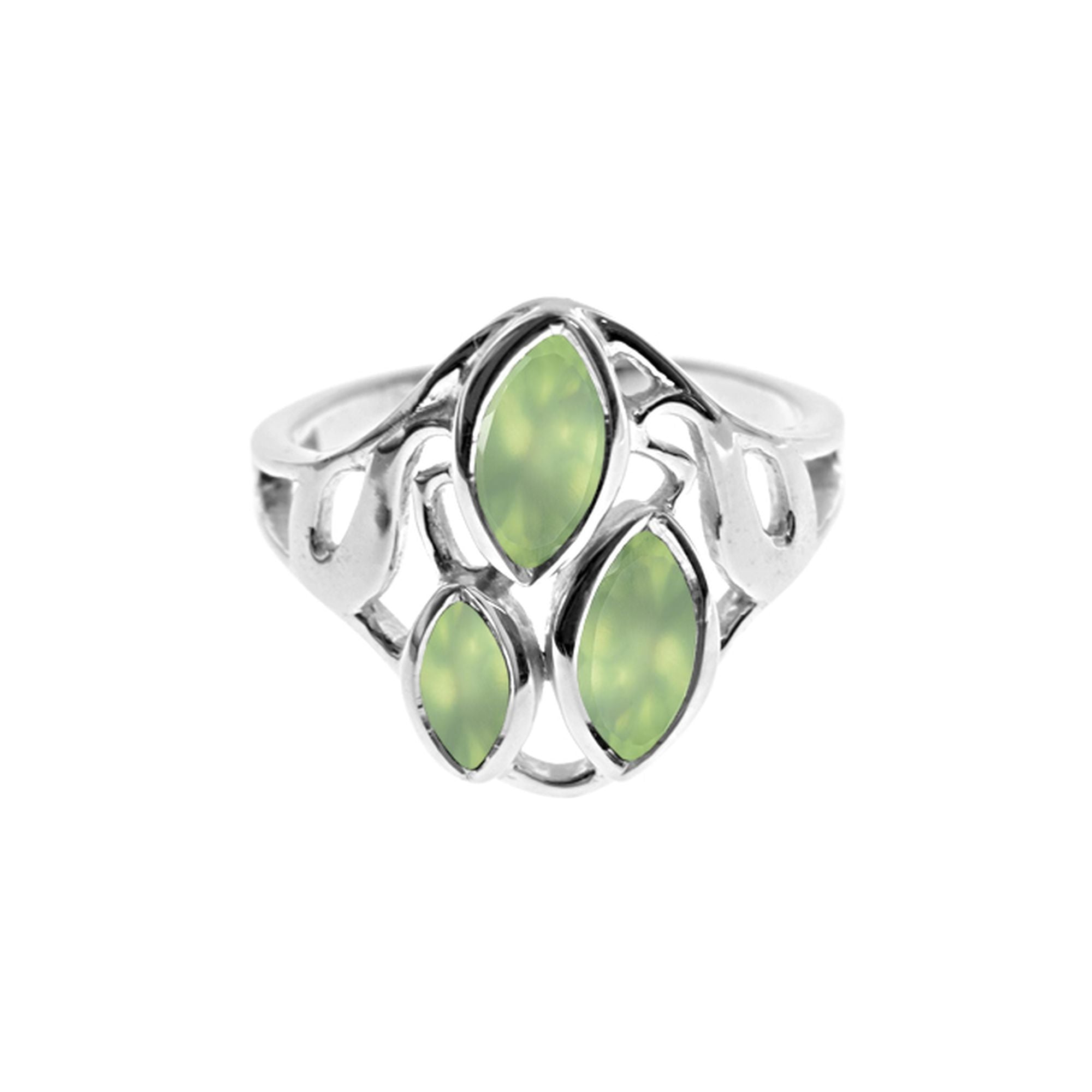 Lola triple marquis prehnite filigree ring