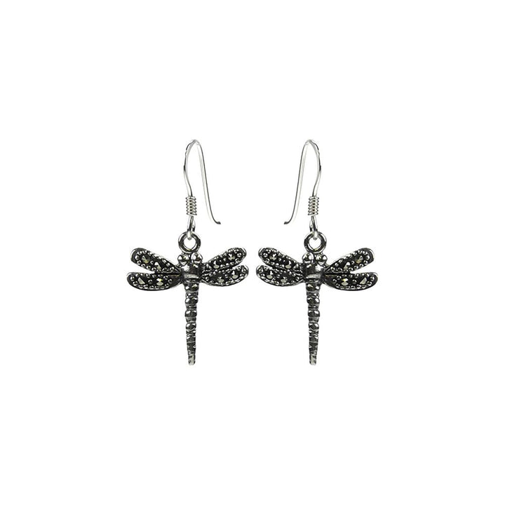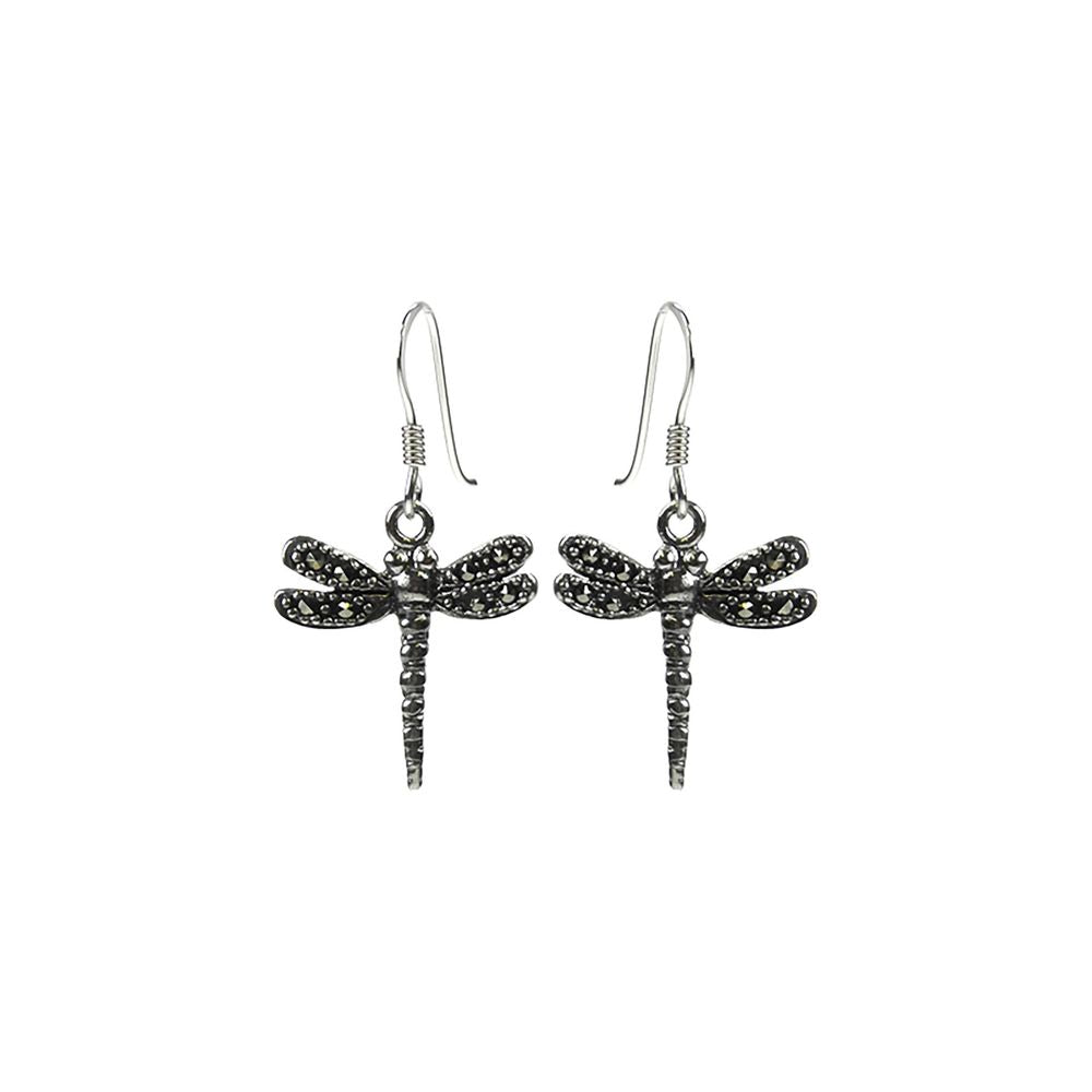 Silver and marcasite detailed dragonfly earrings