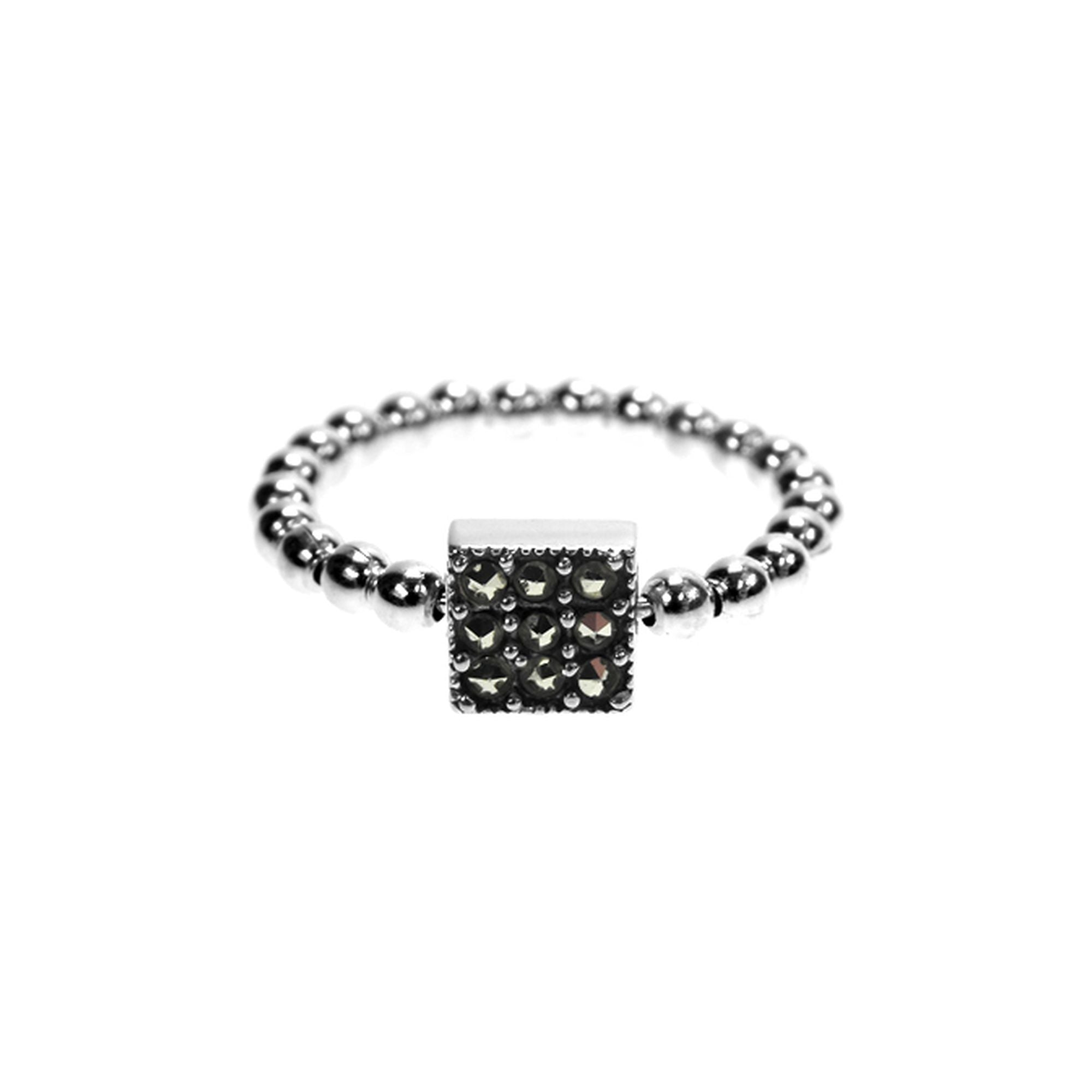 Marcasite twizzle square cluster with ball detail ring