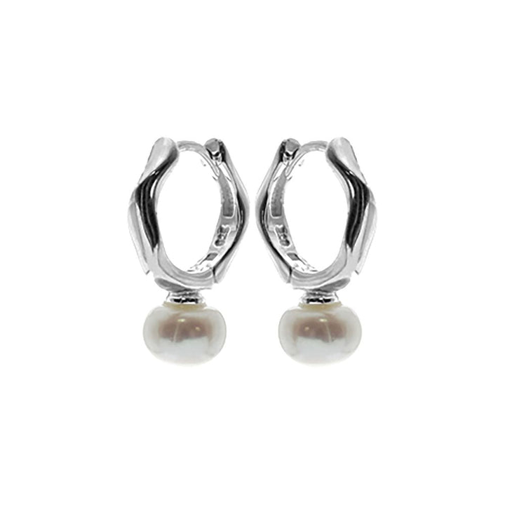 12mm Fluid chunky silver huggies with freshwater pearl