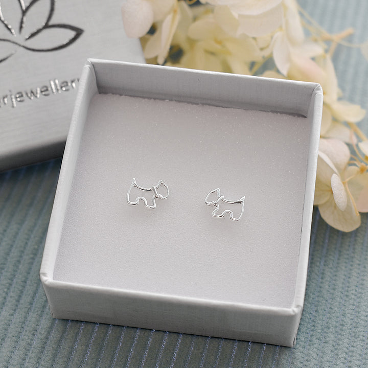 Silhouette scottie dog studs in 925 silver