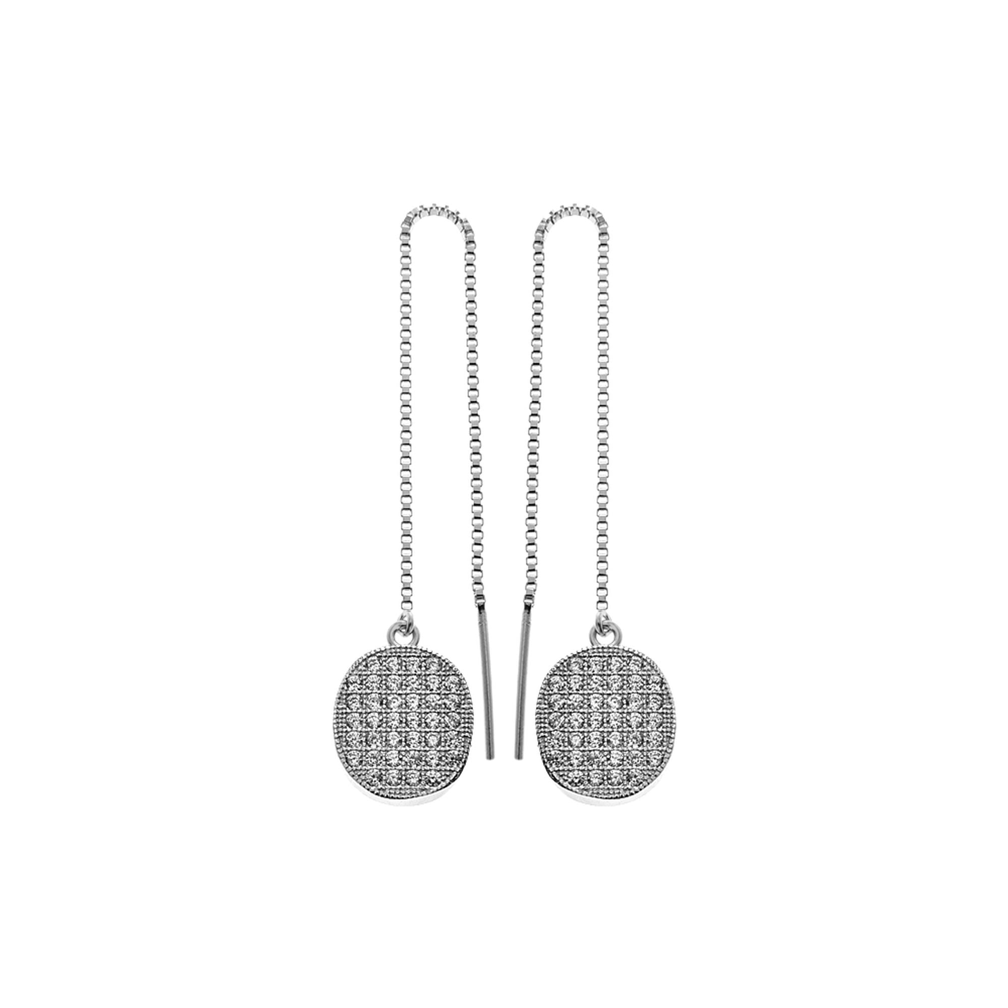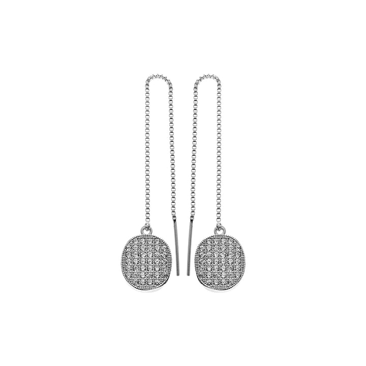 Micro-set cubic zirconia silver oval thread through earrings