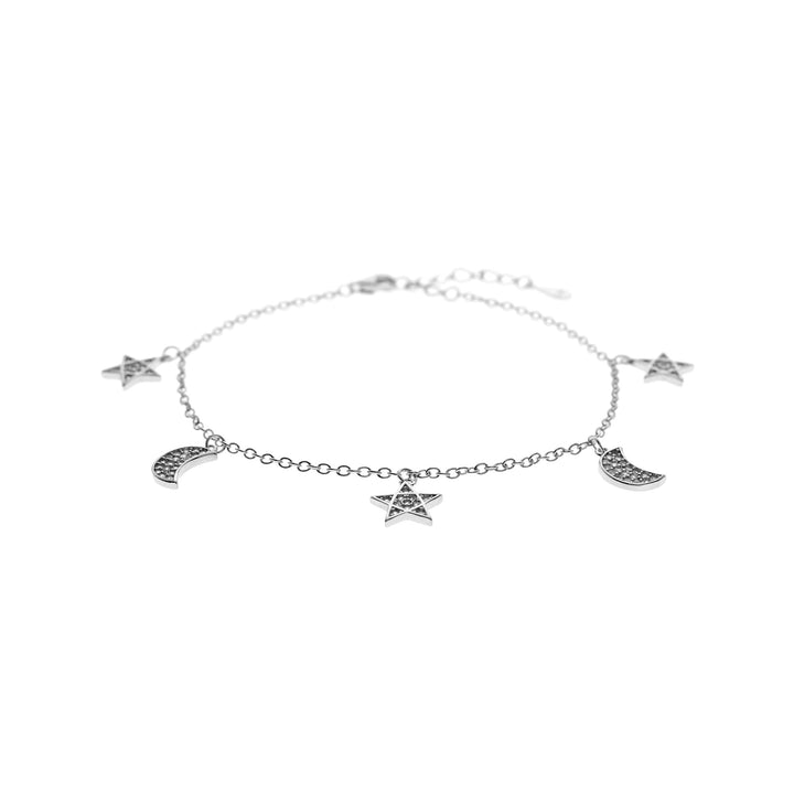 Silver chain bracelet with moon and star cubic zirconia set charms