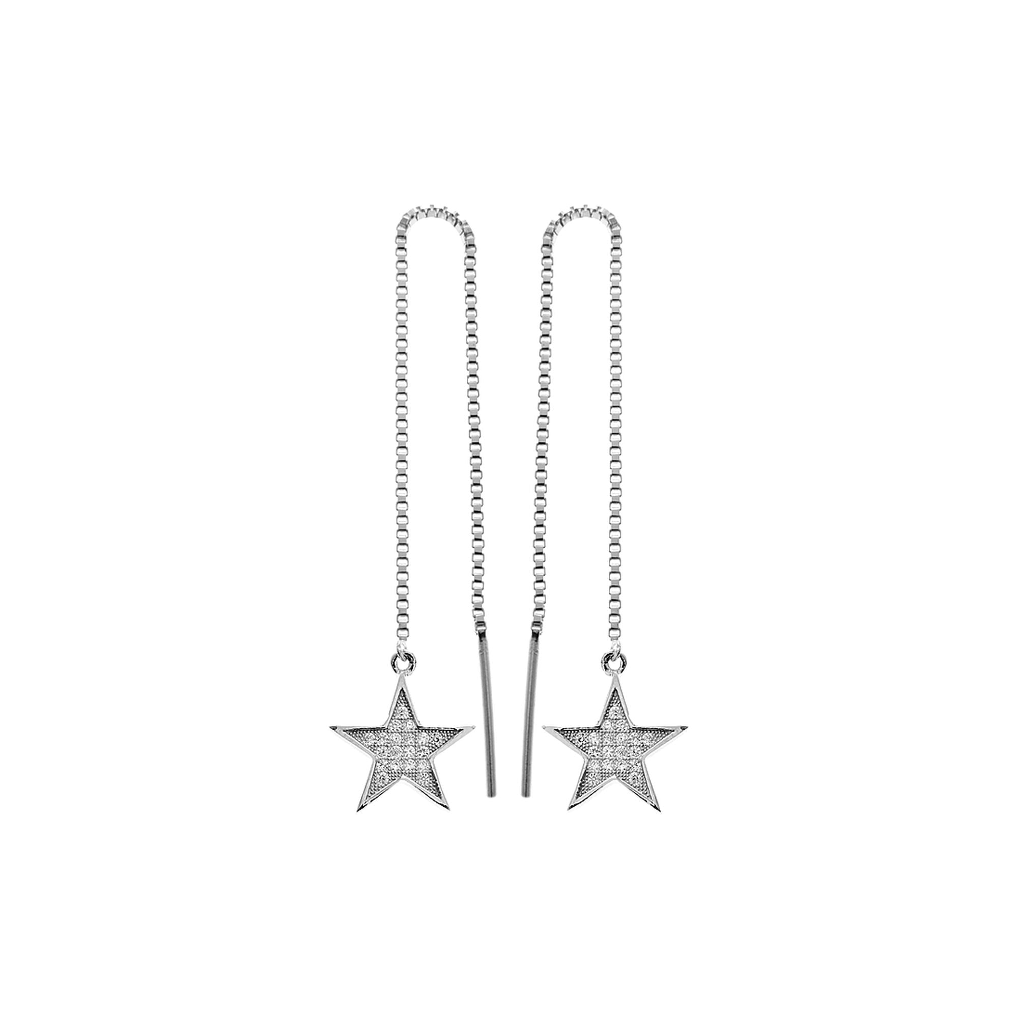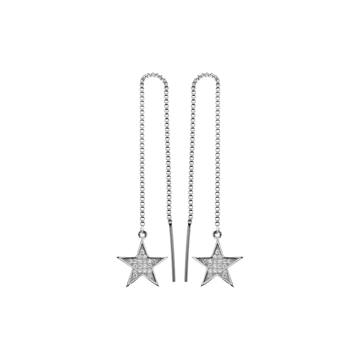 pull through earrings with cubic zirconia-encrusted star