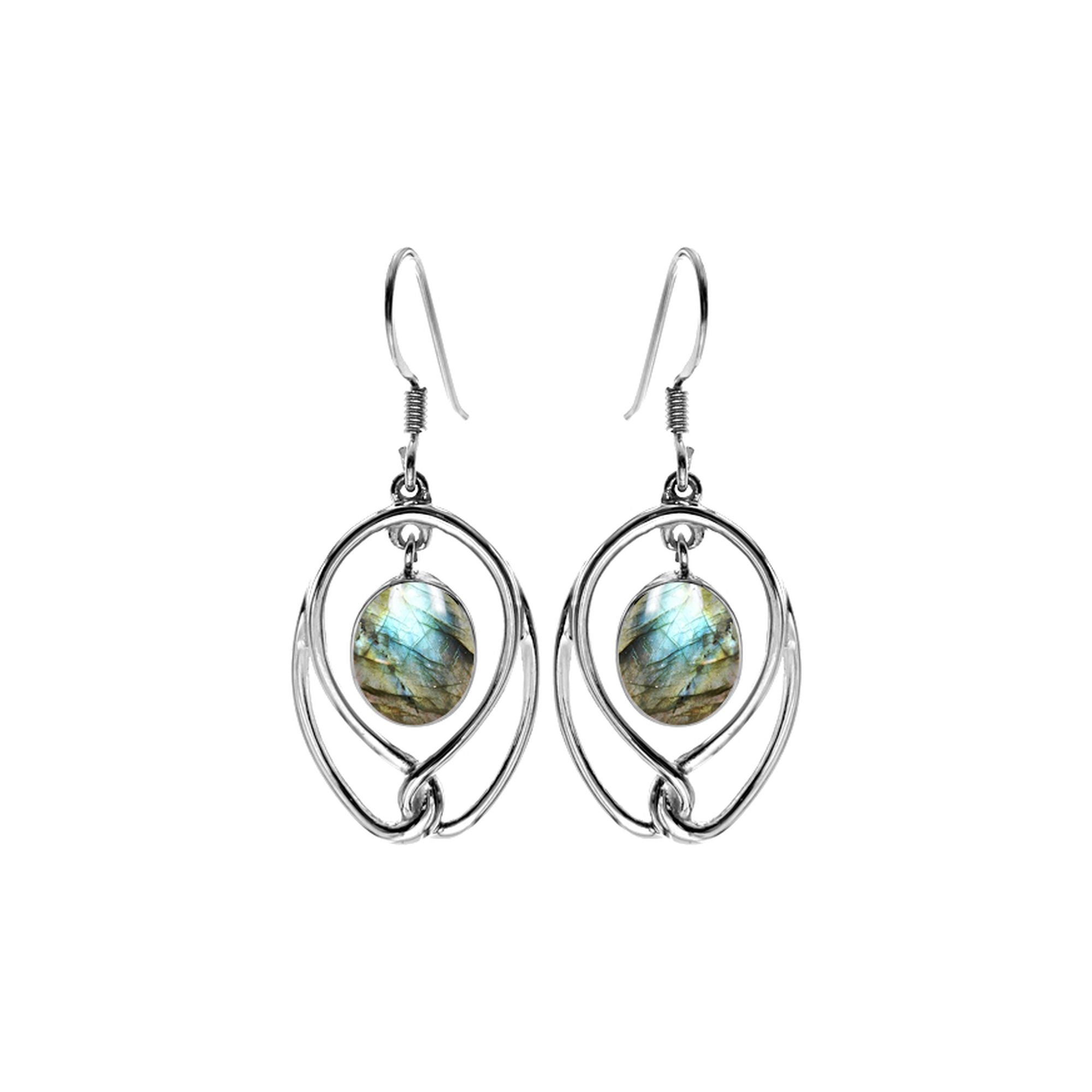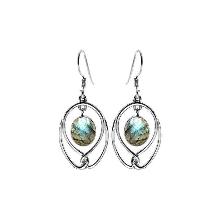 Oval labradorite and wire earrings with twist loop