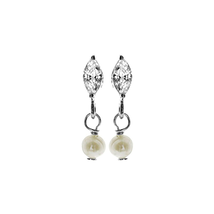 Marquis cubic zirconia silver studs with freshwater pearl drop