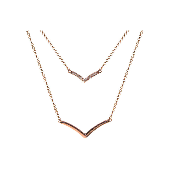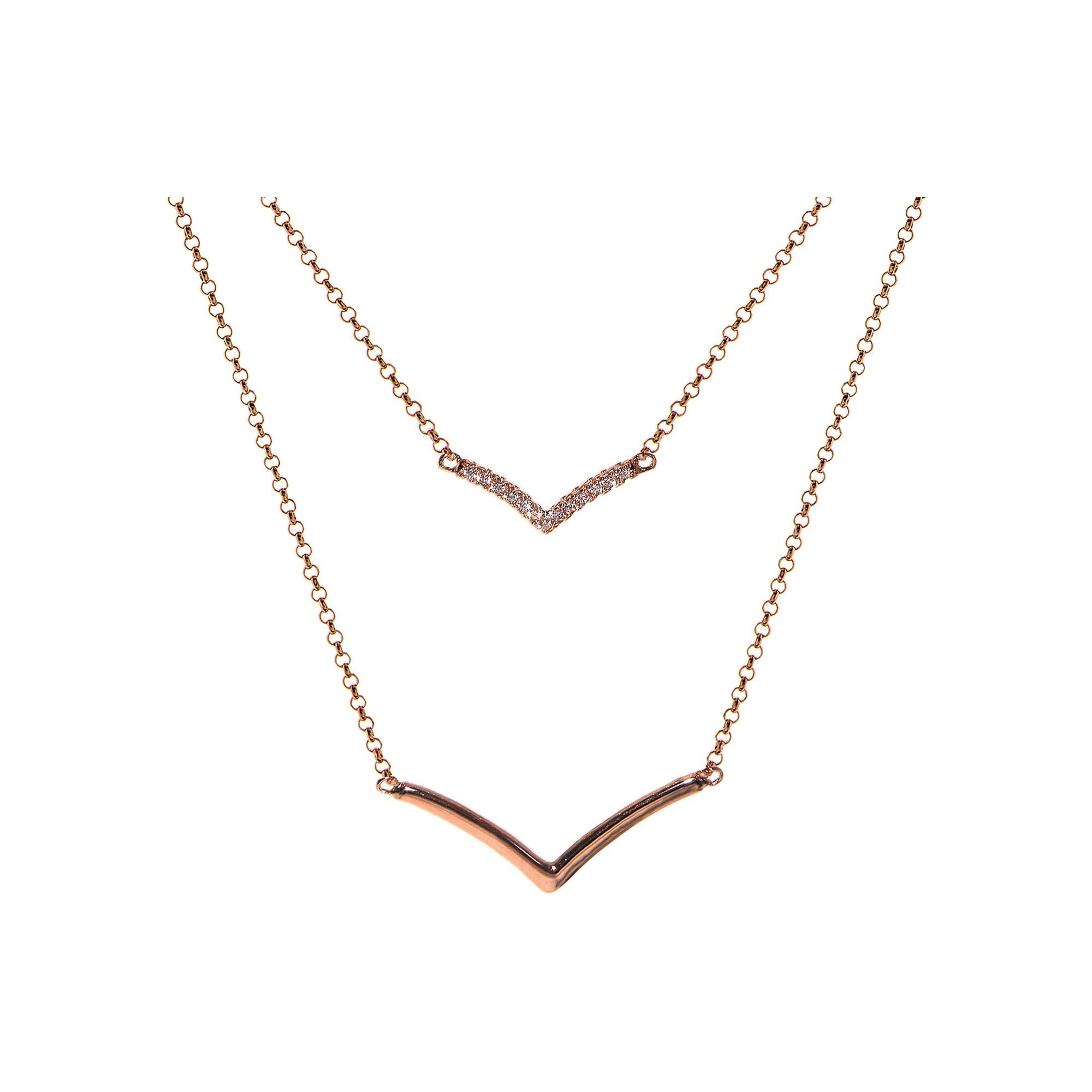 Silver and rose gold chain and chevron necklace with cubic zirconia