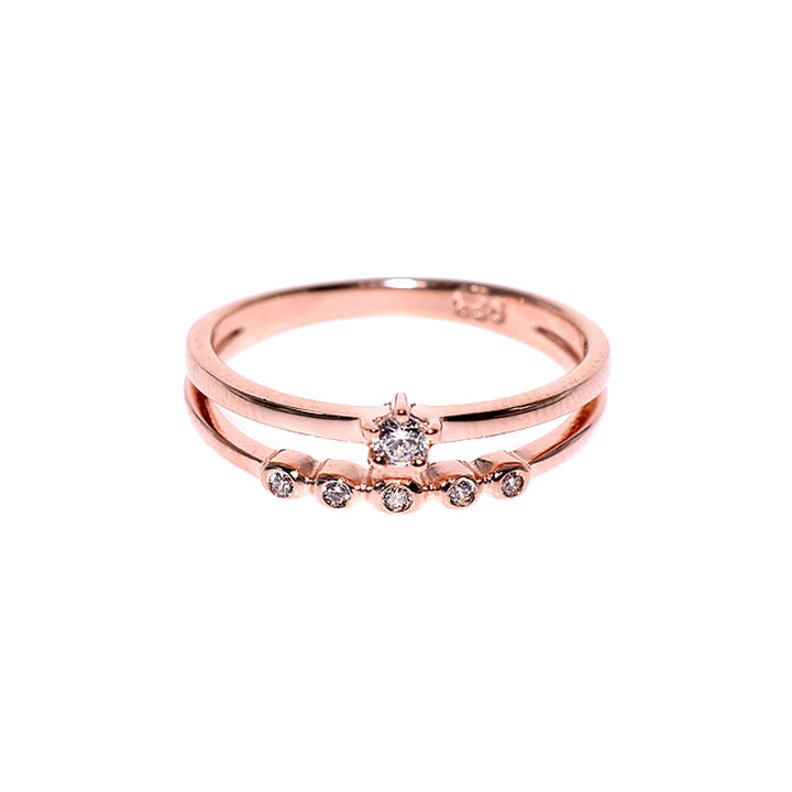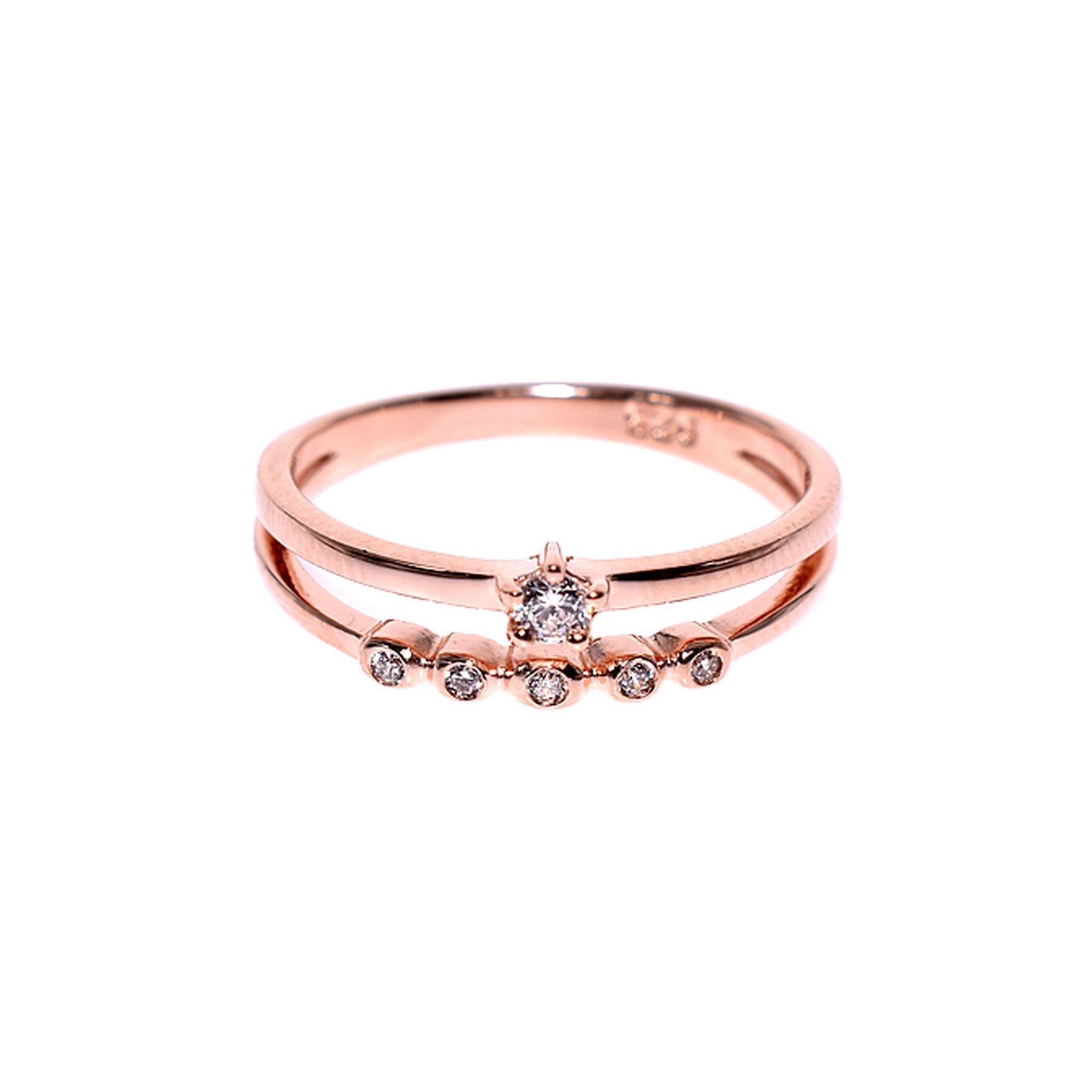 Silver and rose gold vermeil split band ring with cubic zirconia