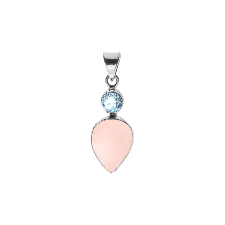Rose quartz and blue topaz inverted teardrop and round pendant