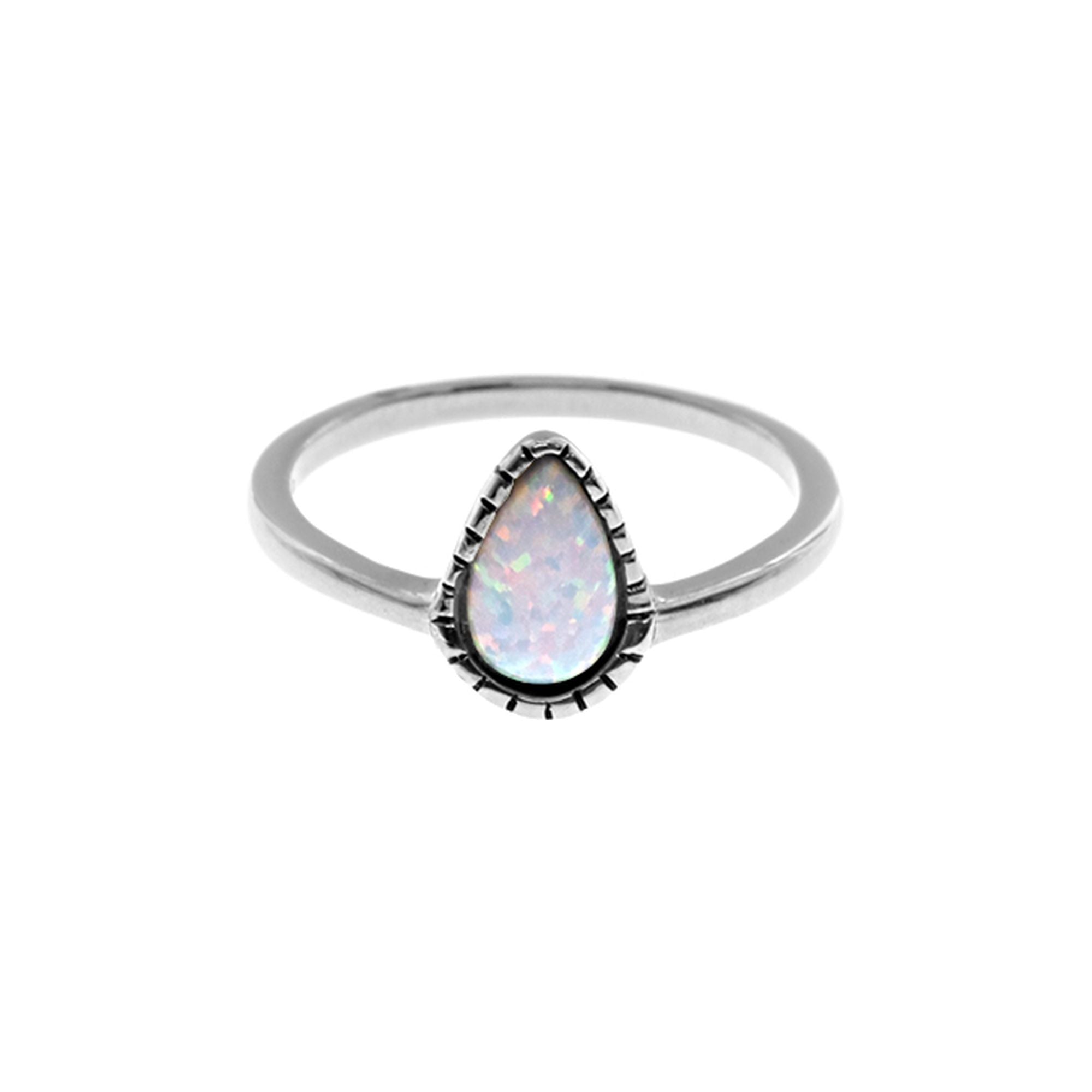 Sabrina teardrop white opalique rope shank ring