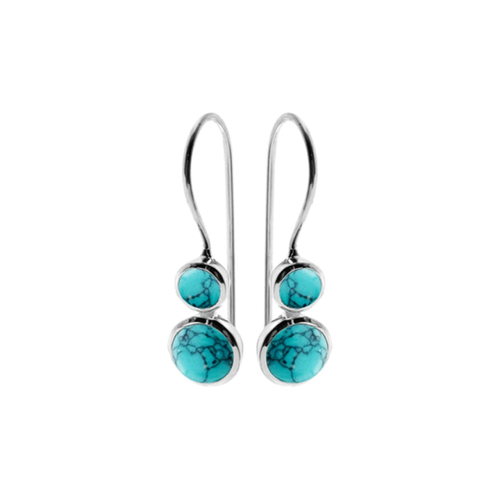 Silver stacked round turquoise earrings with fixed hook
