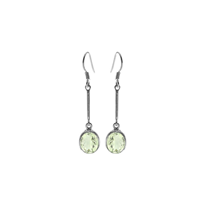 Green amethyst oval on a long stem earrings