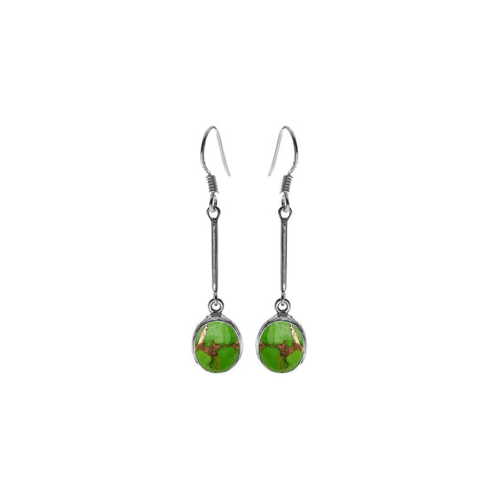 Green mohave turquoise oval on a long stem earrings