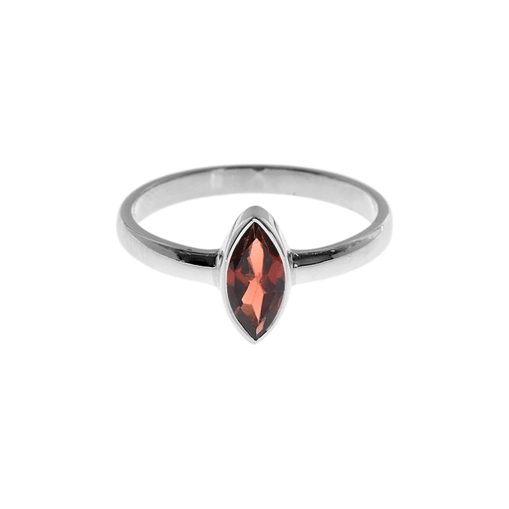 Simple marquis faceted garnet solitaire ring