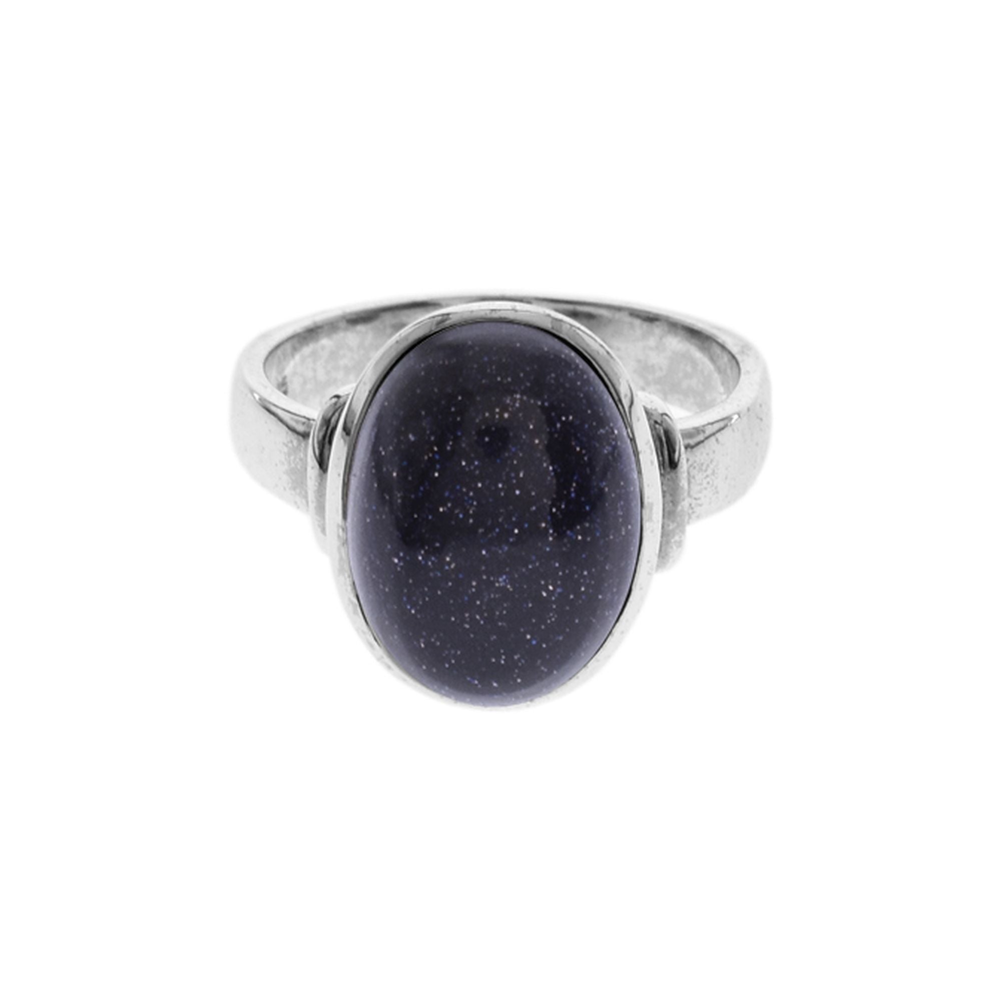 Blue goldstone oval Cab with Shoulder detail ring