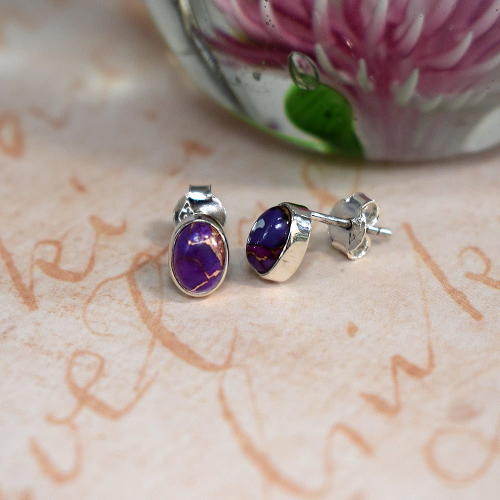 Purple mohave turquoise Oval 6 x 4mm Cab Plain Stud