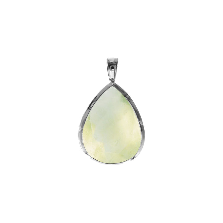 Fixed bale prehnite teardrop pendant