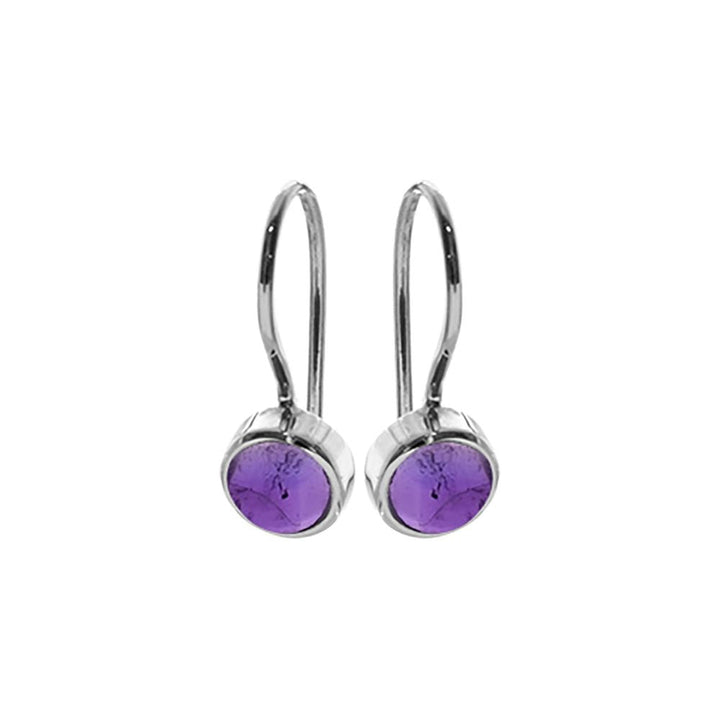 Round amethyst silver fixed hook earrings