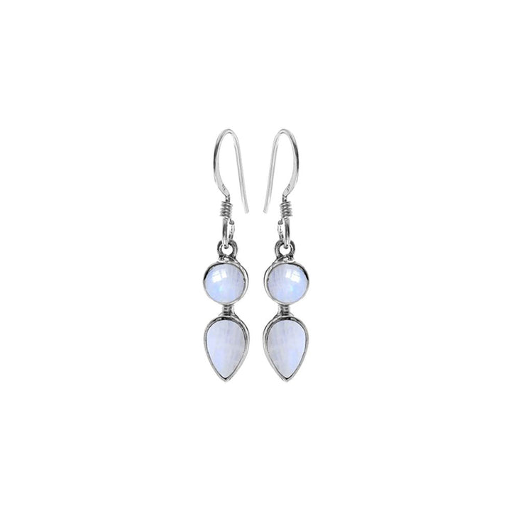 Simple round and teardrop rainbow moonstone and 925 silver earrings
