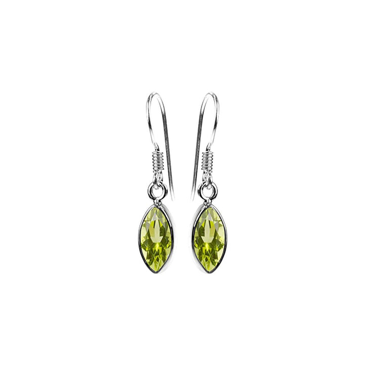 Small collet-set silver and marquis peridot earrings
