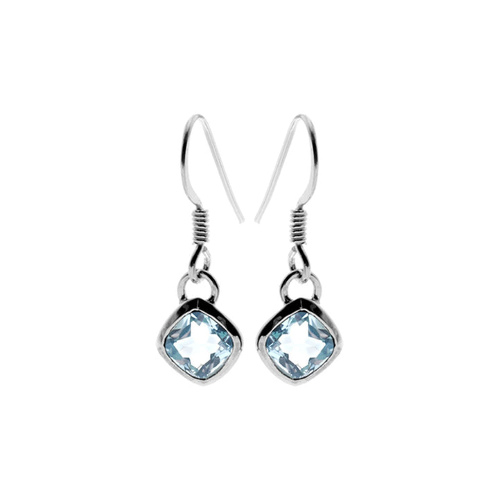 Silver offset squircle blue topaz earrings