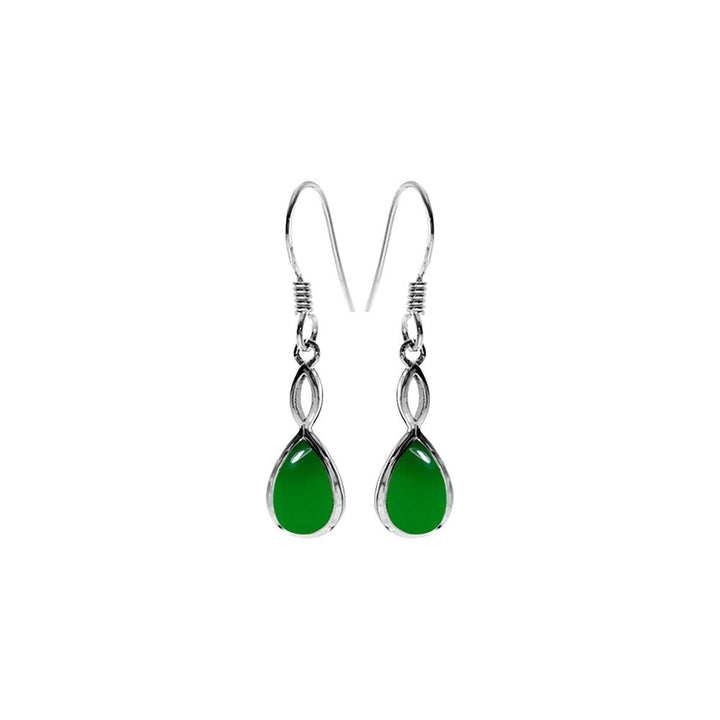 Teardrop green agate silver drop earrings