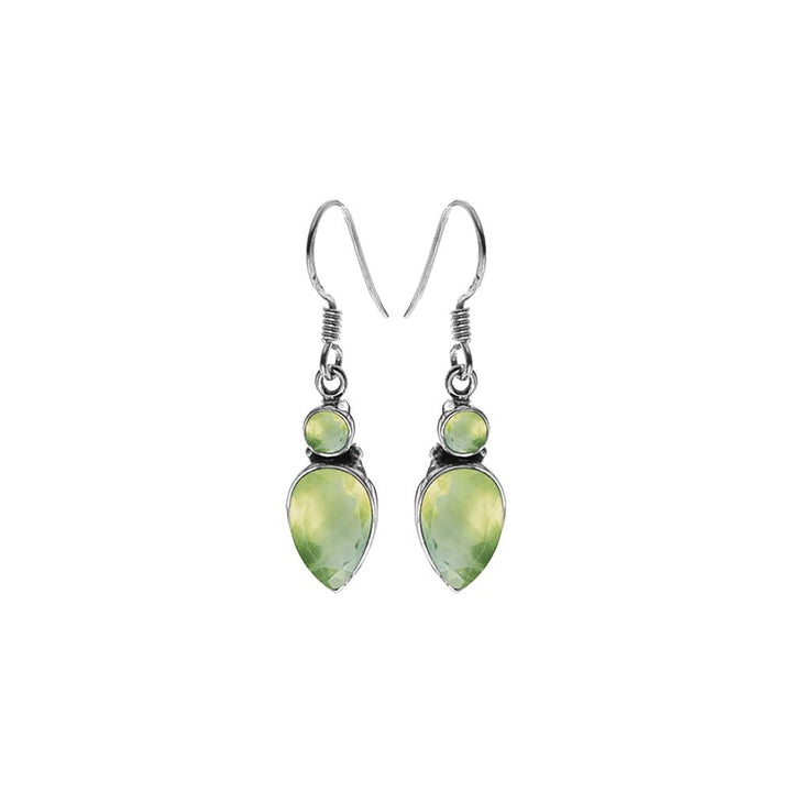Prehnite inverted teardrop and round earrings
