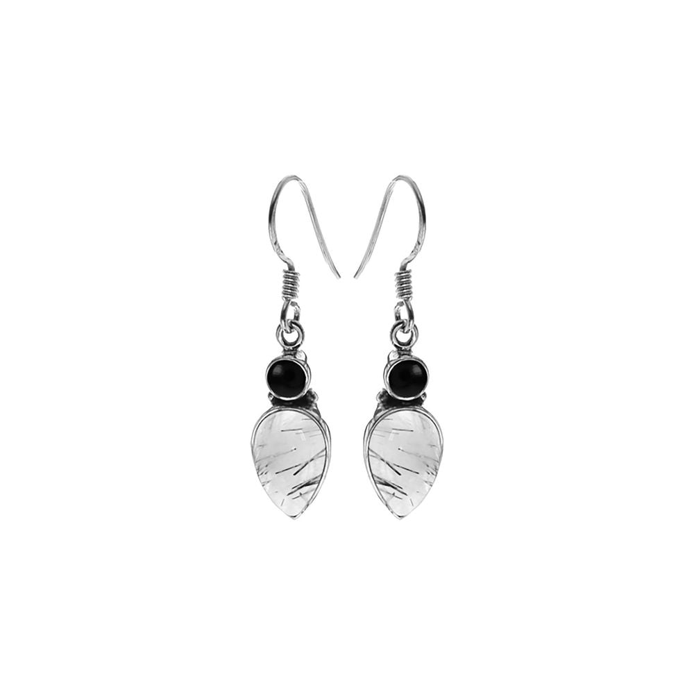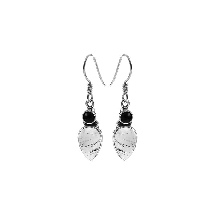 Tourmalated quartz and black onyx inverted teardrop and round earrings