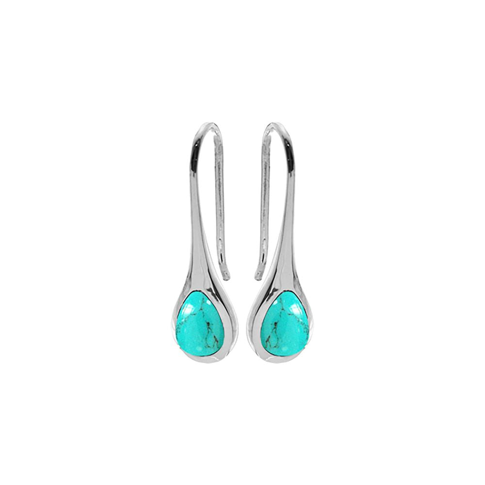Teardrop turquoise and tapered silver fixed wire earrings