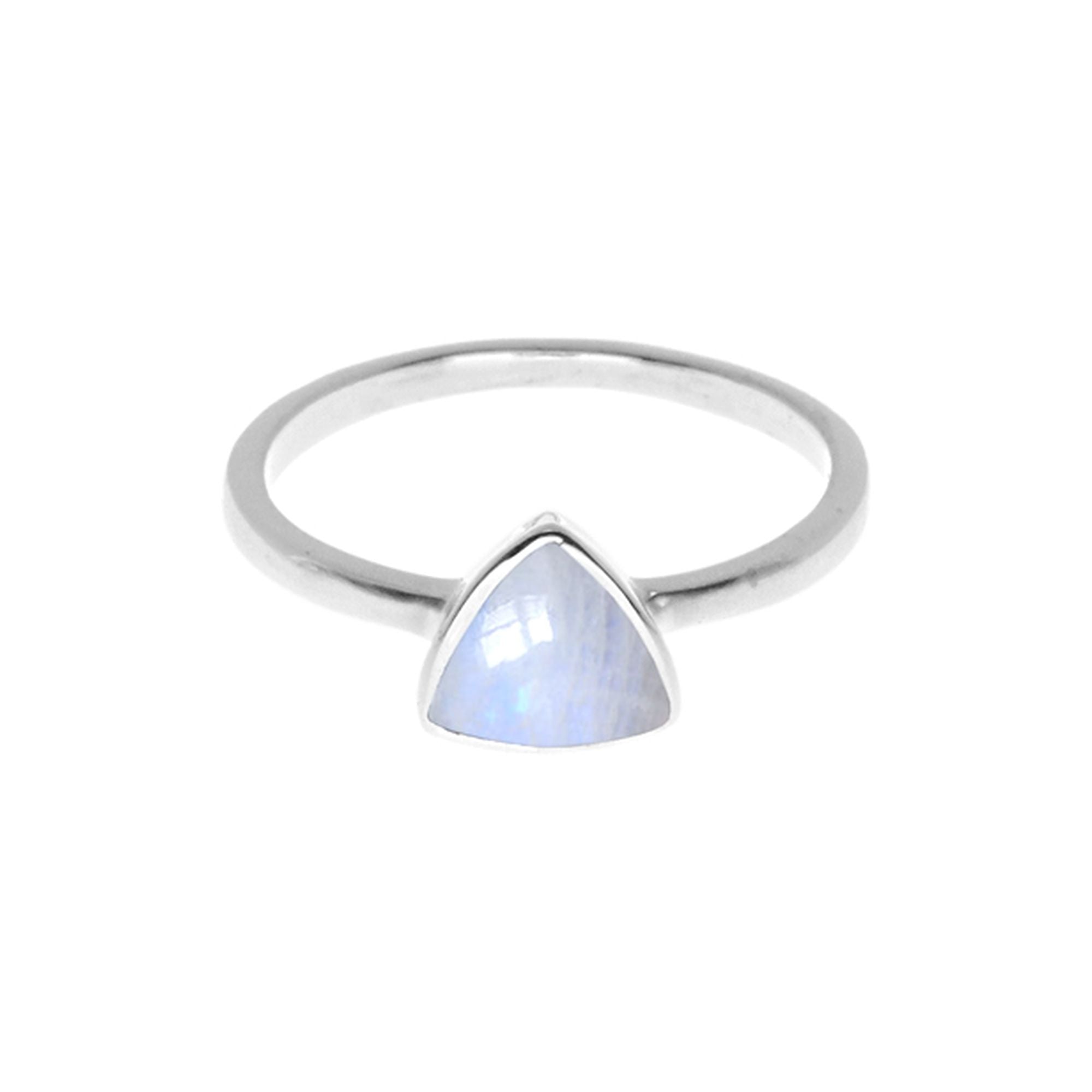 Trillion cut rainbow moonstone ring
