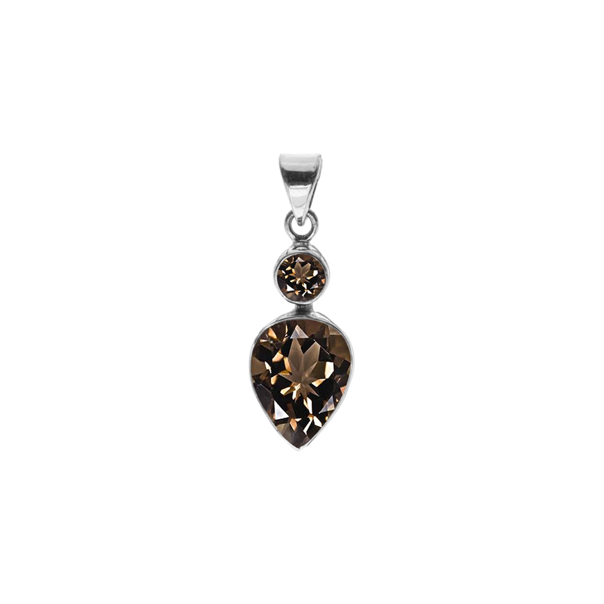 Smokey quartz inverted teardrop and round pendant
