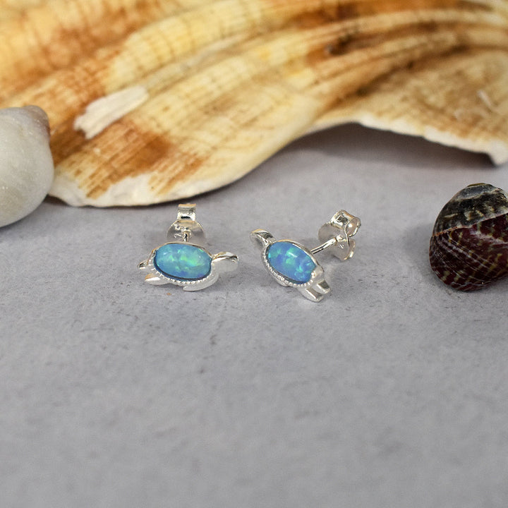 Blue opalique turtle and silver studs