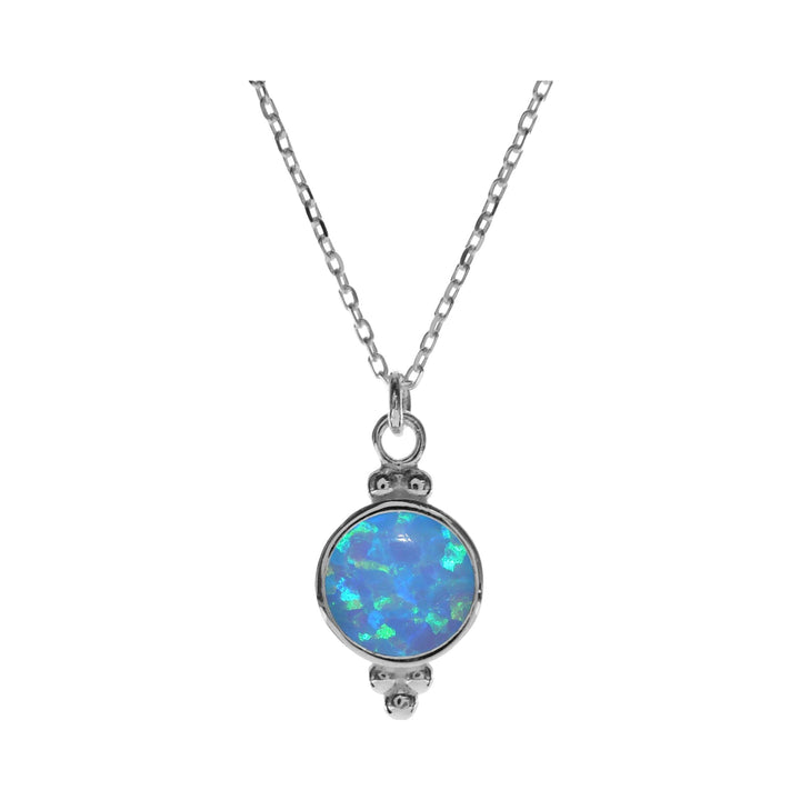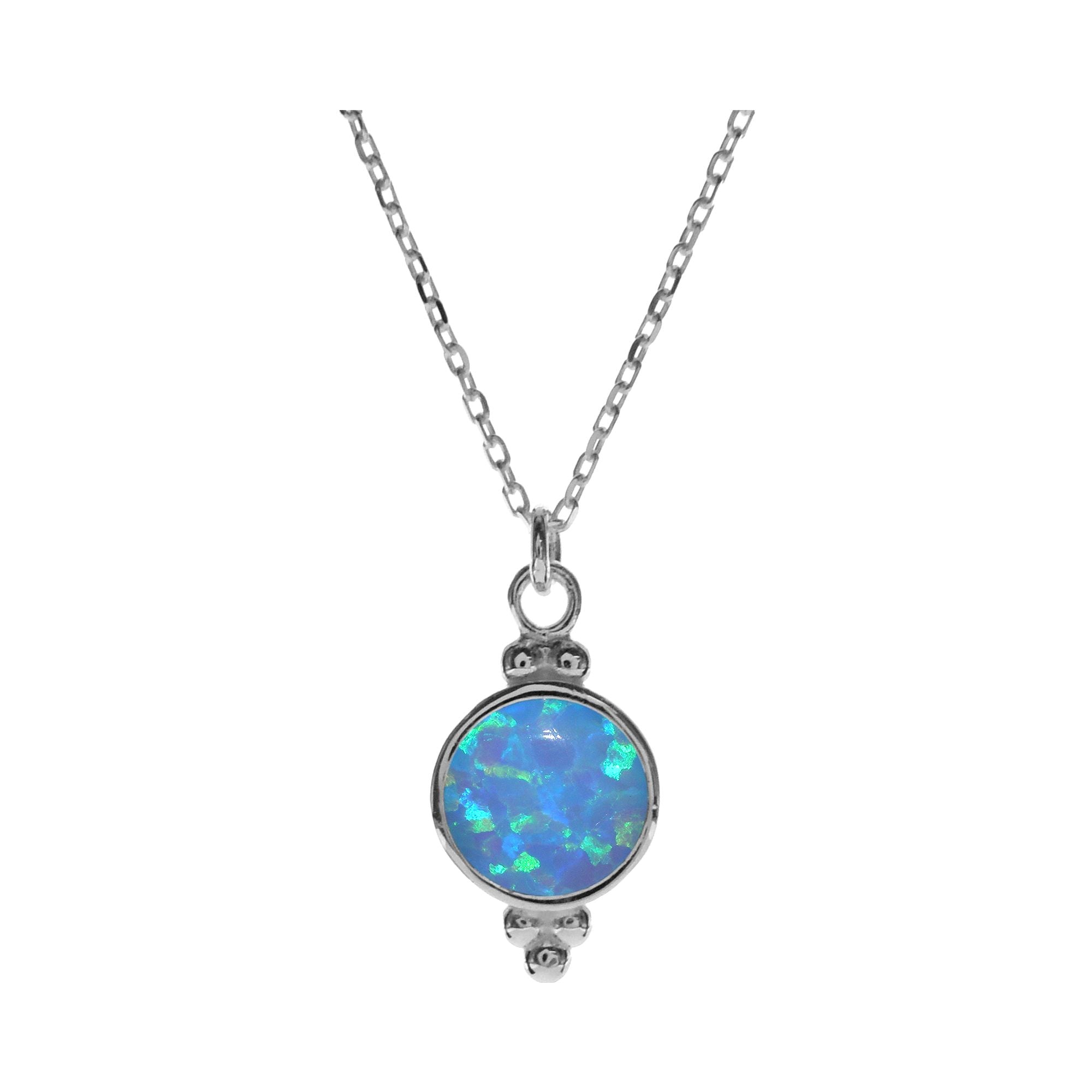 8mm Round blue opalique with silver ball detail necklet